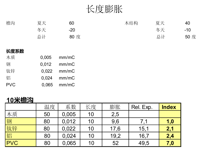 在所有檐溝材料中鋼的熱位移最小,它會保持原來的形狀而不易造